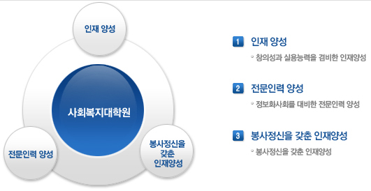 실용적 학문연구를 고취시켜 실무능력을 강화하고 사회봉사의 생활화를 통하여 복지교육을 강화하며, 인성교육을 강화하여 민주적 시민의식을 드높여 도덕적 품성을 갖춘 유능한 지도자 및 전문인을 양성한다.